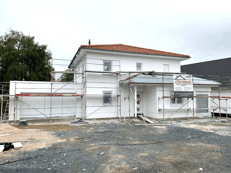 Außen begleiteten wir das Bauvorhaben außen vom Grundputz bis zum finalen Anstrich.