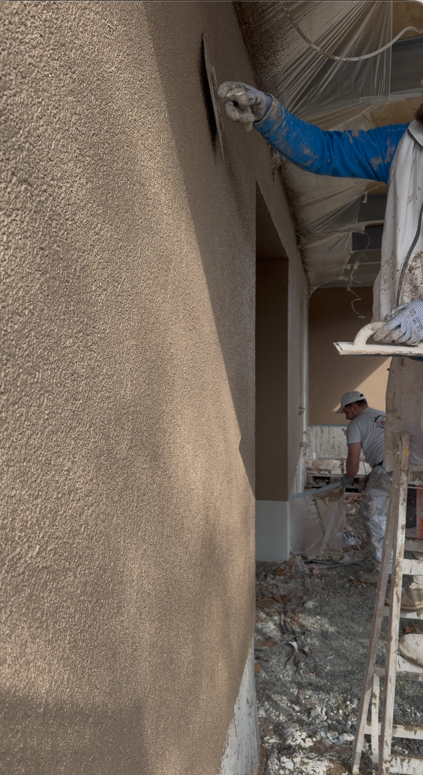 In dieser Aufnahme sehen Sie die Malerarbeiten mit unserem Graco-Sprayer in vollem Gange.